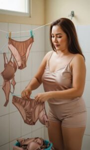 “Di dapur, sayang”, sahutnya setengah berteriak, aku bergegas ke situ, kulihat ia sedang menghangatkan donat di microwave. Dan…, uuuhh, tubuh yang semalam kunikmati itu, dari arah belakang…, bayangan BH dan celana dalam putih di balik gaun sutranya yang tipis membuatku berkali-kali menelan ludah.